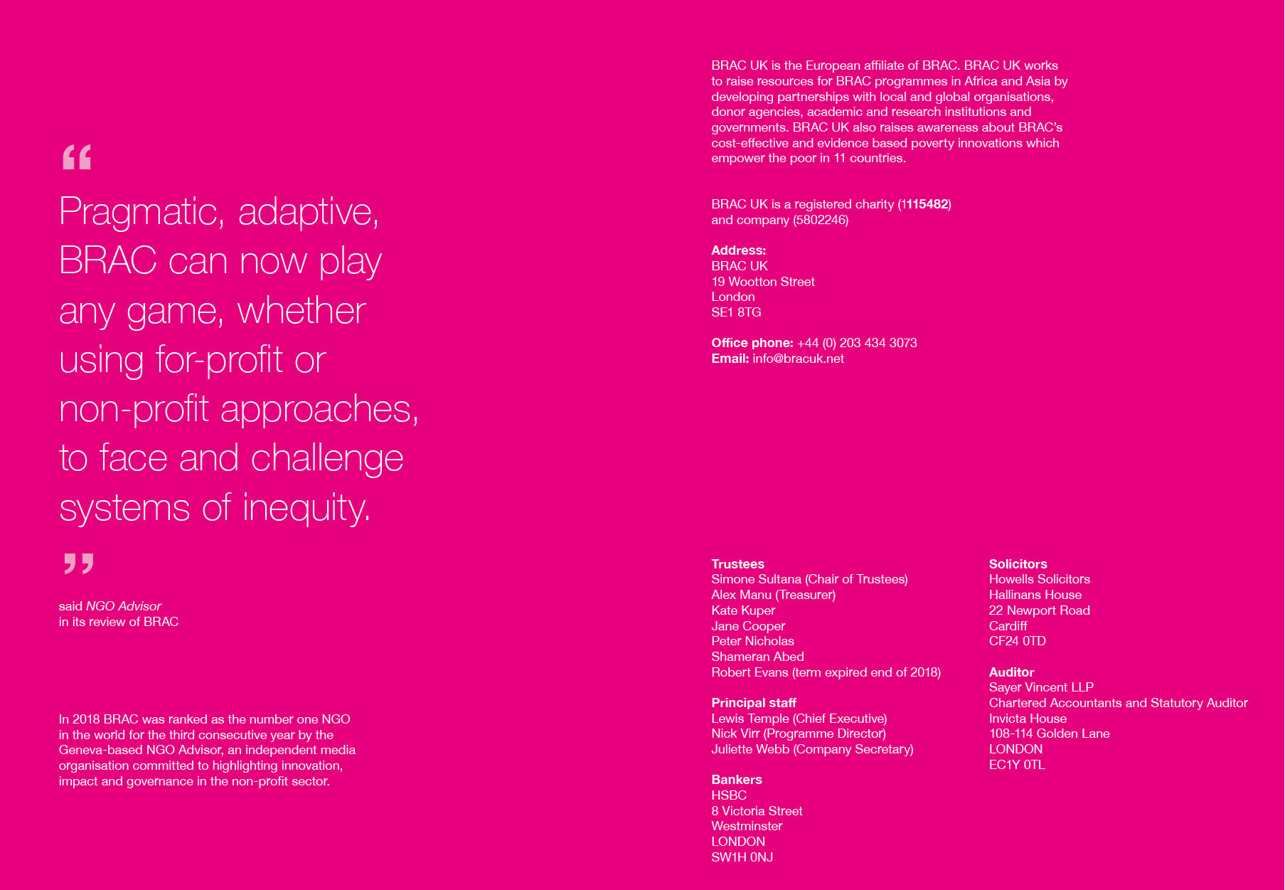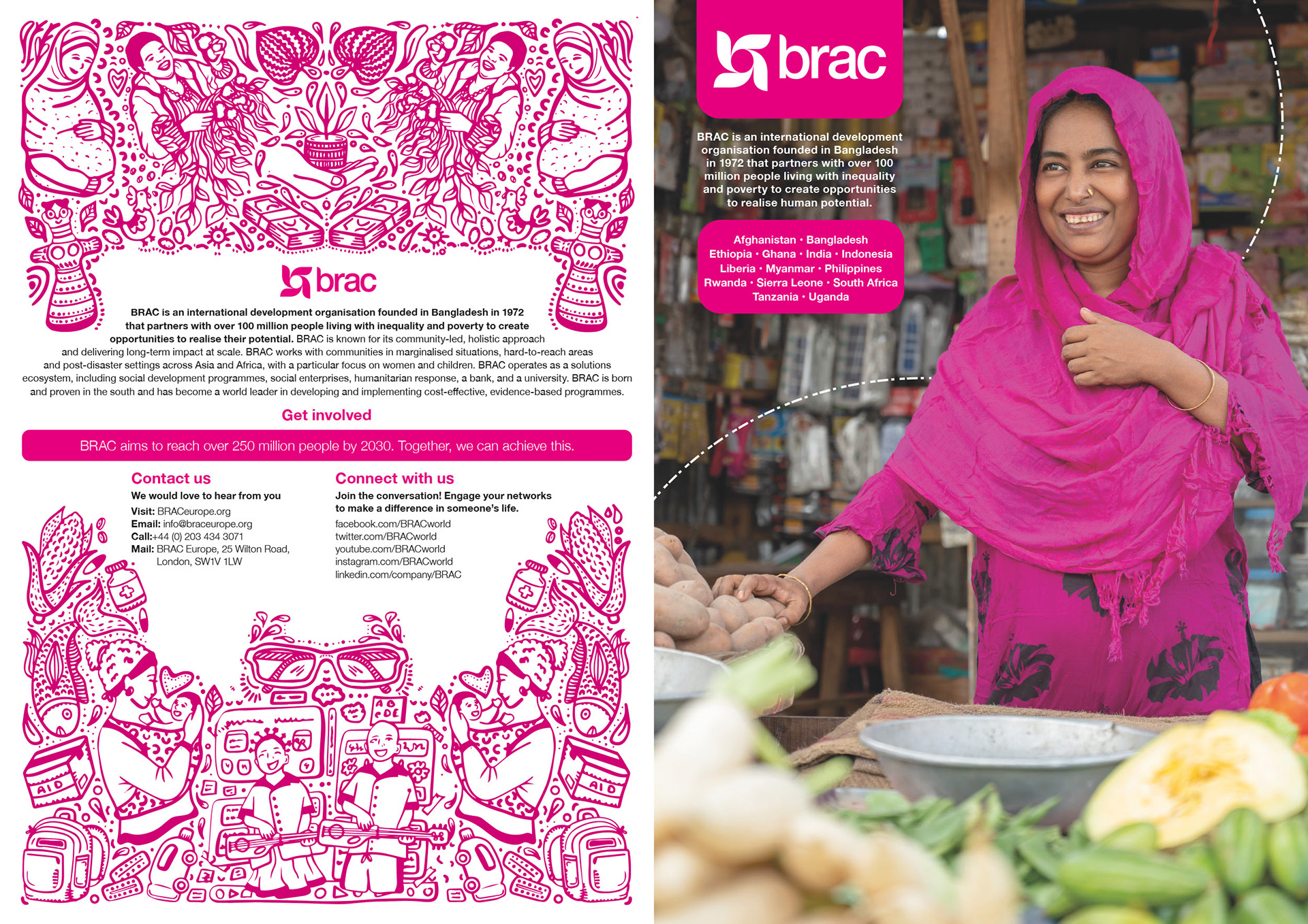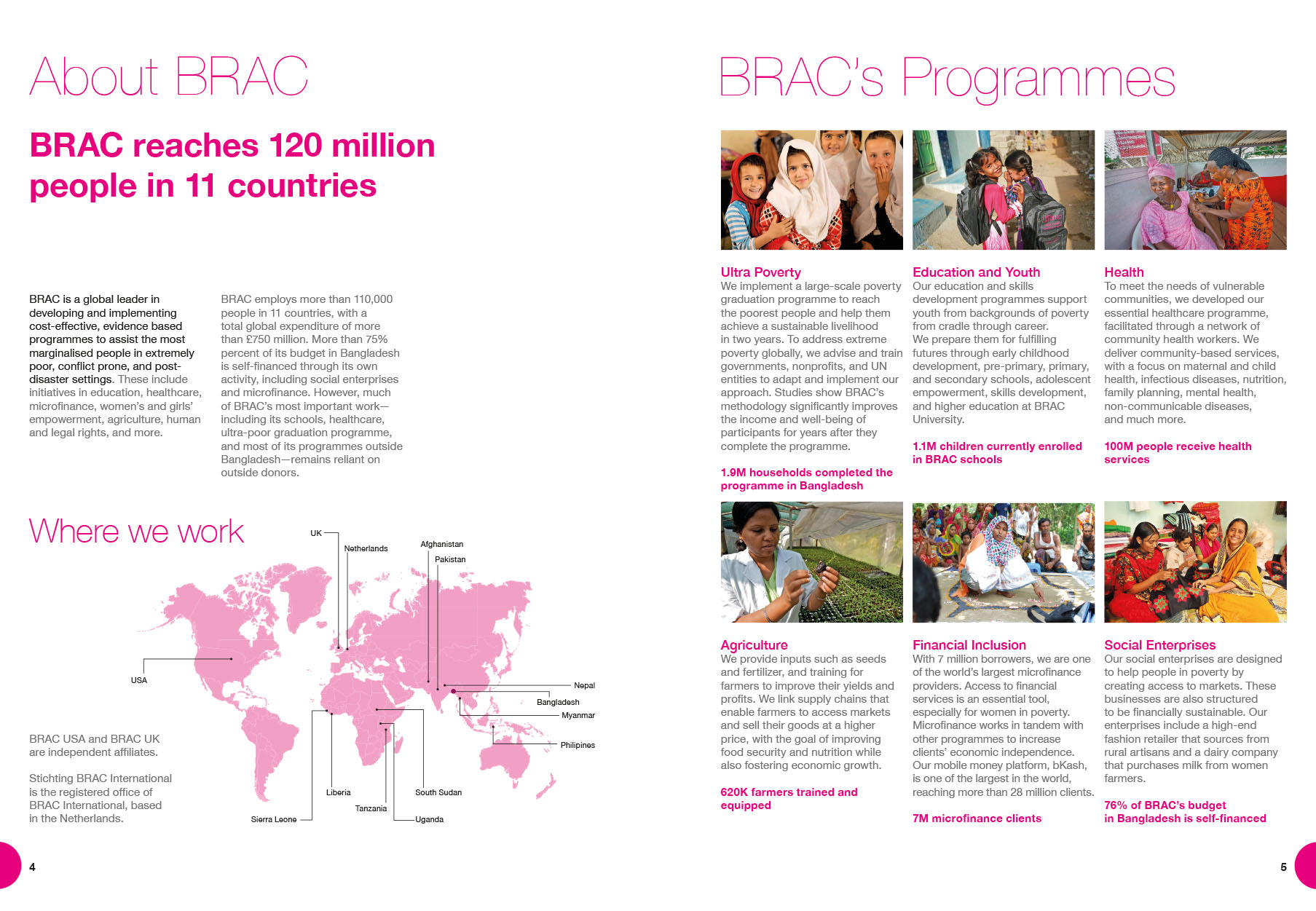Promotional 4 page leaflet and an Annual Report for International Charity BRAC UK.